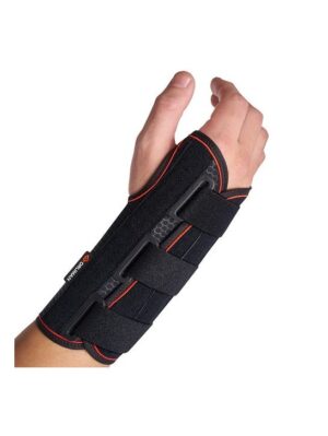 Esta muñequera está hecha con aluminio maleable en la zona de las férulas palmar y pulgar. De igual manera, incorpora dos refuerzos dorsales de plástico para mejor sujeción. Está indicada para pacientes con lesiones.