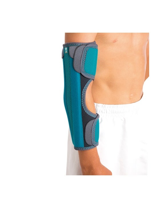 Ortesis de Orliman inmovilizadora de codo para favorecer tratamientos terapéuticos, postoperatorios, luxaciones y lesiones. Mantiene la articulación en extensión, ya que limita movimientos de flexión, giratorios o laterales. Es una pieza completa que posee una abertura en la parte frontal. Dicho orificio contribuye a poder introducir dispositivos para tratamientos por vía venosa periférica. Se descubre el área de toma de venas para realizar exámenes o colocar tratamientos.