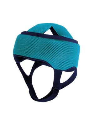 Protector craneal para niños Orliman acolchado y transpirable, fabricado fundamentalmente a base de foam, que es una espuma de polietileno. Su composición interna es tejida de punto de panal de abeja con dos agujas o palitos que proporcionan firmeza, resistencia y durabilidad; y de la mezcla de algodón y poliéster que brinda comodidad. Además, está provisto de una cincha o arnés que pasa por debajo de la mandíbula inferior y permite un ajuste sencillo mediante hebillas de plástico. El largor permite ser alterado por un pasador que se ubica en las hebillas.