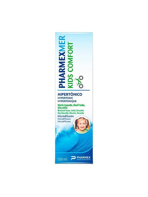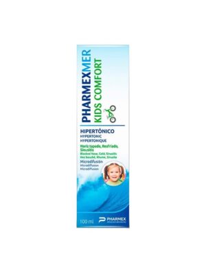 Pharmexmer Spray Kids está formulado a base de agua de mar diluida hipertónica estéril al 100%, rica en sales minereales y oligoelementos marinos que ayudan a mantener el buen funcionamiento de las fosas nasales.