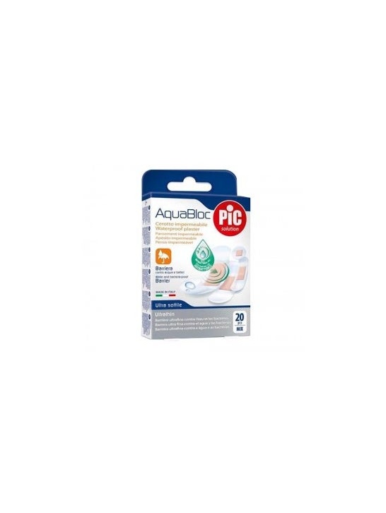 Pic Solution Aquabloc Antibact Ø22,5Mm 20 Uds son apósitos impermeables con tampón antibacteriano de clorhexidina, fino y transparente.Indicado para favorecer la protección de heridas ante el riesgo de infección, por la acción de la clorhexidina. Protege del agua al ser impermeable. Previene que la sangre salga a la superficie.