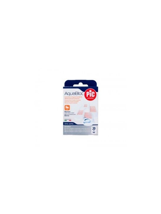 Pic Solution Aquabloc Antibact Surtido 20 Uds son tiritas transparentes para proteger heridas cutáneas. Contiene un tapón antibacteriano con clorhexidina. Es transparente e impermeable para favorecer que no haya riesgo de contraer una infección, del agua y de las bacterias durante un largo periodo.