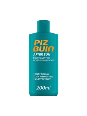 Piz Buin® After-sun Intensifier es una loción ideal para después del sol que prolongará el efecto de tu bronceado. Gracias a su fórmula rica en tanimel, un extracto de plantas, conseguirás incentivar la producción natural de la pigmentación de la piel e intensificar tu bronceado.