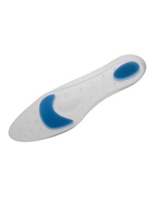 Plantillas fabricadas con silicona viscoelástica con apoyos metatarsal y calcáneo en diferente densidad y con apoyo retrocapital ypuente. Amortiguan los puntos de carga, tanto durante la marcha como en posición estática. Sus densidades (las zonas azules son másblandas que el resto de la plantilla) proporcionan un alivio de la presión, adaptándose a la anatomía del pie. Indicada para talalgias, bursitis, metatarsalgias, espolón calcáneo, fascitis plantar, pie diabético, pies dolorosos, cansados o post-quirúrgicos. En lapráctica deportiva.