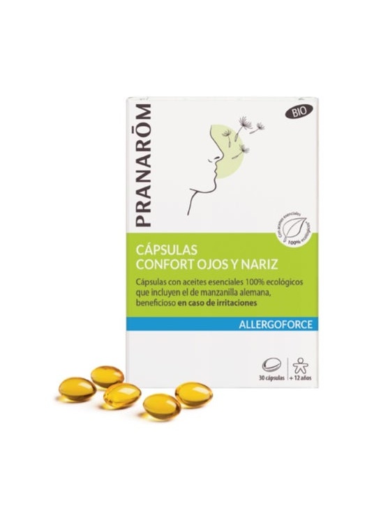 Complemento nutricional indicado para aliviar los síntomas del malestar estacional. El producto viene presentado en forma de cápsulas con aceites esenciales 100% naturales como el de manzanilla alemana. Beneficioso en caso de irritaciones de ojos y nariz.