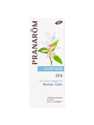 Pranarom La difusion zen bio eco 30ml. La variedad de frutas cítricas da paso al aroma relajante y misterioso del cedro.