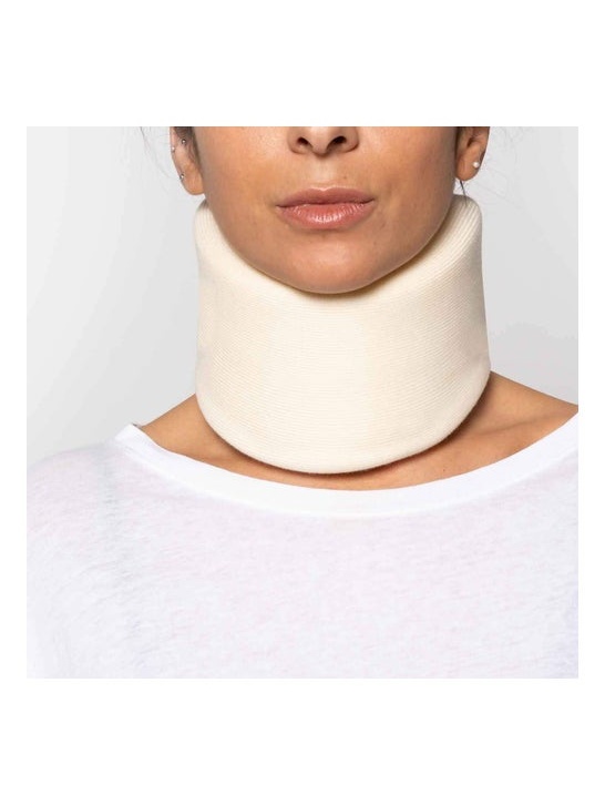 Collarín cervical fabricado con espuma y una cubierta de algodón, que le aporta flexibilidad. Cuenta con un refuerzo en la parte posterior. Su forma es con bordes redondeados y con un tejido suave y cómodo. Hay varias alturas dependiendo del contorno del cuello del paciente. El cierre es de velcro, lo que facilita el ajuste y la retirada. Permite la transpiración de la piel gracias a los tejidos y tiene una circunferencia de unos 42-54cm con una altura de hasta 10cm. Está indicado en caso de traumatismos leves, síndrome doloroso de cuello, dolor de cervicales, otros problemas cervicales. Sin embargo, siempre hay que consultar a su médico antes del uso. La marca Prim ofrece materiales y tejidos de calidad pensando en las personas que pasan por procesos quirúrgicos y necesitan reposar en algo cómodo.