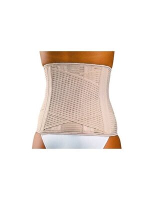 Cinturón o faja de sujeción lumbar y abdominal para el tratamiento de dolencias en el área baja de la espalda y recuperación de usuarios postcirugía y post parto. Brinda apoyo a la zona lumbar de la espalda mediante el tejido elástico que distribuyen los esfuerzos generados en la zona. Cuenta con un ajuste anatómico por medio de dos bandas ajustables. Con efecto confortable contra los dolores lumbares sin incomodar al usuario, gracias a su construcción cómoda.
