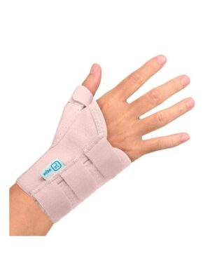Férula para la muñeca con pletina de aluminio extraíble y moldeable para el apoyo del pulgar, que permite conseguir una estabilización individualizada, cómoda y efectiva de las articulaciones.