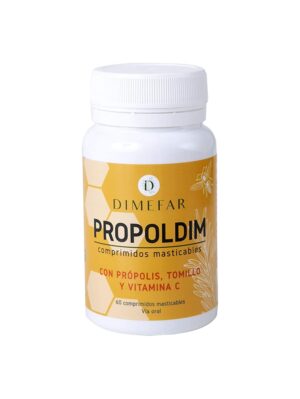 Propoldim comprimidos masticables 60 comprimidos es un complemento alimenticio con edulcorante. La fórmula de estos comprimidos masticables está basada en própolis, tomillo y vitamina C para suavizar la garganta. Con sabor muy agradable a naranja.