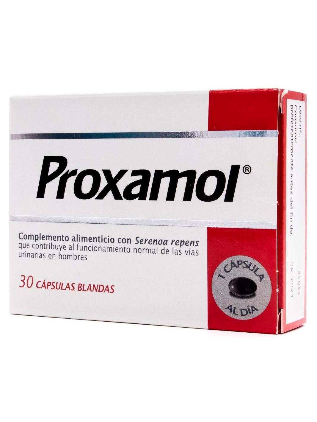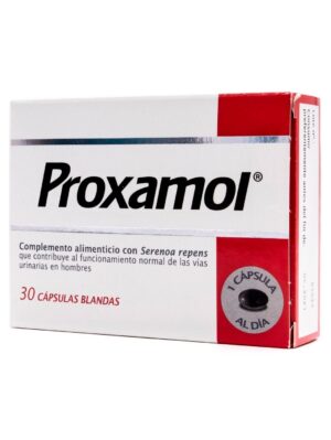 Proxamol 30 Cápsulas complemento alimenticio en forma de cápsulas con extracto lipídico del fruto de Serenoa Repens que colabora en el buen funcionamiento urinario de los hombres.