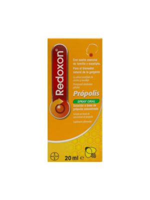 Redoxon Própolis spray oral 20ml es una solución de própolis en spray. El própolis o propóleo es una sustancia natural elaborada por las abejas con un efecto antiséptico, antibacteriano, antiinflamatorio, antimicrobiano, analgésico y antiviral. Ayuda a calmar y prevenir el dolor de garganta, la tos, la irritación y otros síntomas y molestias ocasionados por el resfriado y la gripe, la amigdalitis, la tos y otras infecciones virales. Asimismo, su actividad inmunomoduladora ayuda a fortalecer el sistema inmunitario y su efecto antioxidante es especialmente activo frente a la producción de radicales libres.