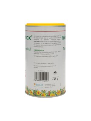 Roha-Max® Tránsito Intestinal 130g es un complemento alimenticio natural y muy fácil de tomar que puede ayudar como laxante y devolver el dinamismo al organismo, contribuyendo a mantener un tránsito intestinal normal. Gracias a la combinación de plantas estimulantes como las hojas de sen y de menta y aromas de hibisco o raíz de regaliz, Roha-Max® Tránsito Intestinal cuenta con efectos osmóticos y astringentes, que ayudan regular el ritmo intestinal.