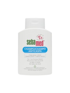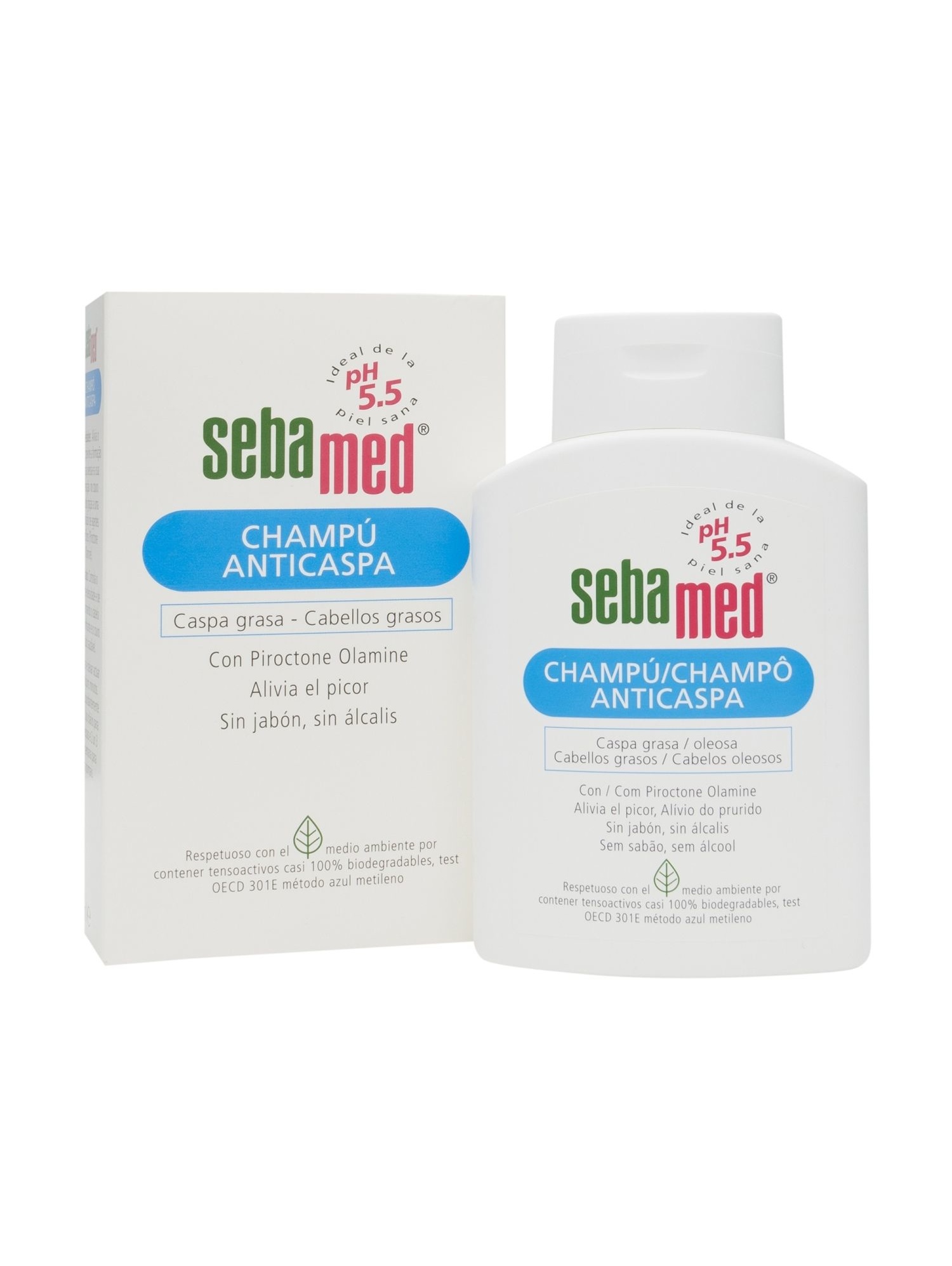 Sebamed champú dermatológico anticaspa está destinado a los cabellos grasos que sufren de descamación, aunque también es útil para los cabellos normales. Elimina y previene la caspa con Piroctone Olamine mientras que evita el efecto rebote. Proporciona a tu cabello suavidad eliminando el exceso de sebo de tu cuero cabelludo.  Tiene un pH de 5.5.