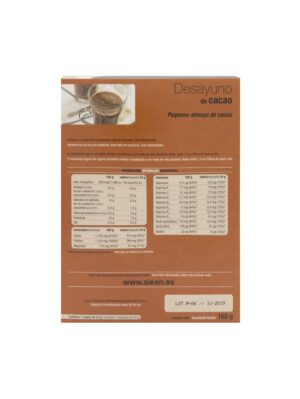 Siken Diet Desayuno Cacao es una solución que, utilizando el sabor del cacao de toda la vida, aporta a tu cuerpo proteínas, magnesio, calcio, fósforo, fibras y vitaminas, ¡Sin añadir calorías! La composición de Sikendiet Desayuno Cacao es baja en hidratos de carbono y grasas, ayudándote a mantener la línea sin renunciar a ciertos placeres.