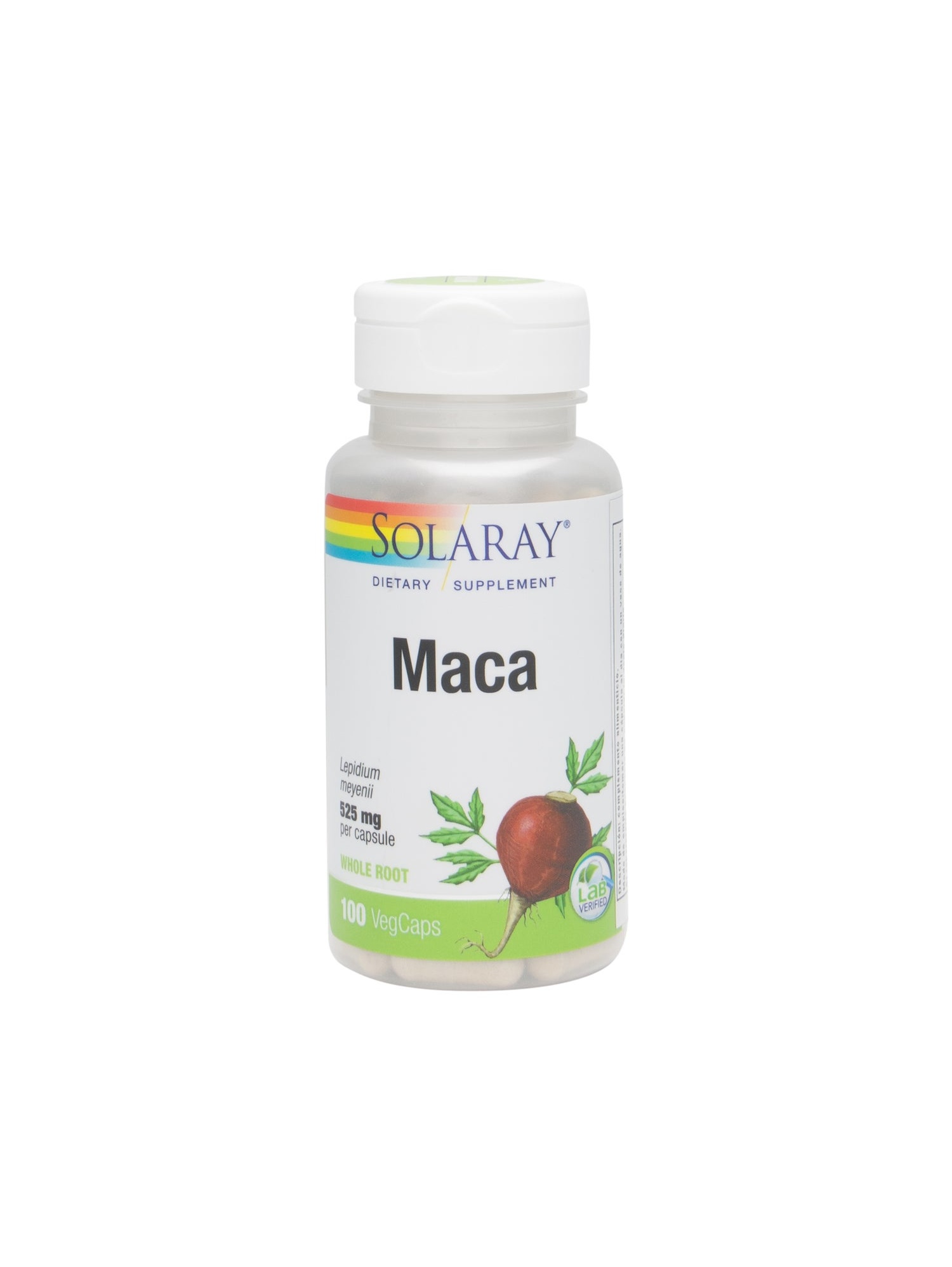 Solaray Maca es un complemento alimenticio vigorizante indicado para personas sin energía, cansadas, fatigadas y que les afecta en su vida íntima. La maca, es un ingrediente que aumenta la energía y la resistencia física y mental ya que aporta nutrientes como aminoácidos y glucosinolatos.
