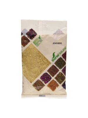 Jengibre orgánico en polvo recomendado para infusiones digestivas. Ayuda a mejorar las digestiones pesadas y está recomendado para beber después de las comidas. Contribuye a reforzar las defensas naturales del cuerpo y aporta propiedades tónicas. No tiene gluten, azúcar, lactosa, ni fue modificado genéticamente. Apto para veganos. Con ingredientes procedentes de cultivos orgánicos y certificación biológica.