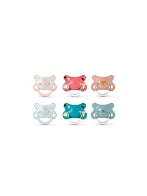 Su tetina anatómica ayuda a imitar la forma del pezón materno durante la succión y también su diseño reduce el contacto del chupete con la piel del bebé.