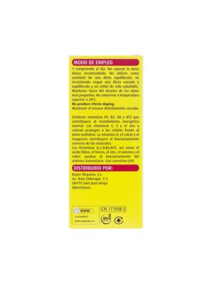 Supradyn® Energy Extra Vitaminas Energía Deporte 60comp es un complemento alimenticio especialmente diseñado para devolverle al cuerpo la vitalidad que éste necesita. Enriquecida con Coenzima Q10, Vitamina C y Vitamina E, la fórmula alimentaria de Supradyn se convierte en un potente elemento antioxidante, capaz de proteger las células y de reforzar su sistema inmunitario.