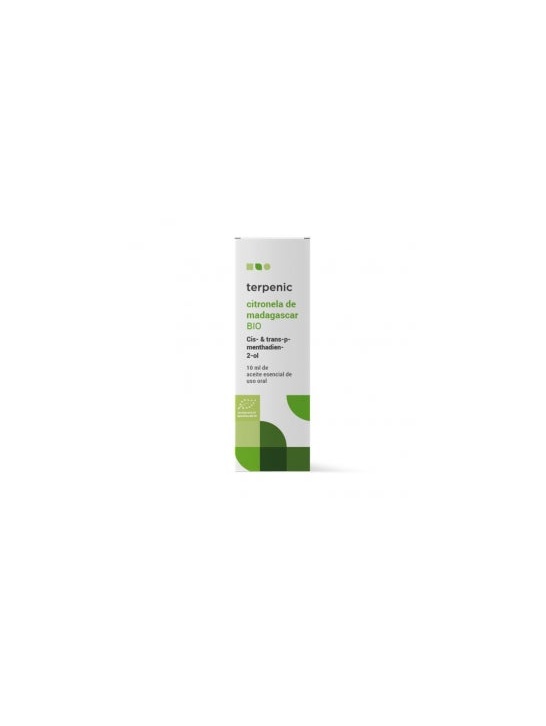 Aceite esencial de citronela de Madagascar con certificado ecológico. Producto de gran pureza y origen natural. El producto es 100% extracto de aceite esencial de cymbopogon giganteus. El aceite esencial citronela de Madagascar tiene propiedades como fungicida, antiviral, antibacteriano, tónico y astringente cutáneo. Se recomienda utilizar en masaje, solo agregar unas cuantas gotas. Envase en formato de 10ml.