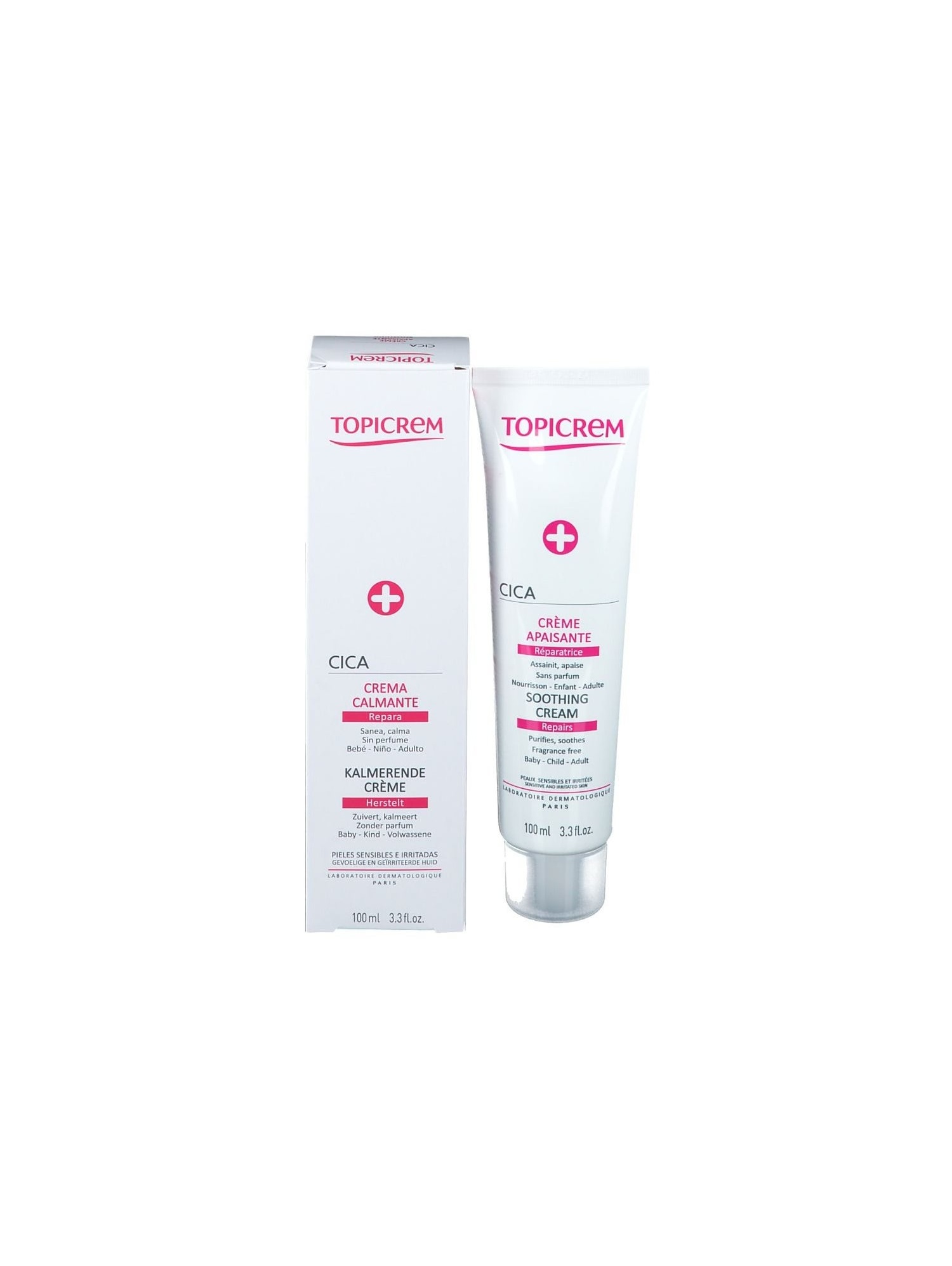 Topicrem Crema Reparadora Cica 100ml es una crema hidratante y reparadora especialmente formulada para pieles con irritaciones cutáneas de bebés, niños y adultos. Enriquecida con Ácido Hialurónico y Minerales. Repara la piel y proporciona un alivio instantáneo. Esta crema es muy recomendable para pieles con grietas, calentamiento, enrojecimiento… Favorece la reparación epidérmica.