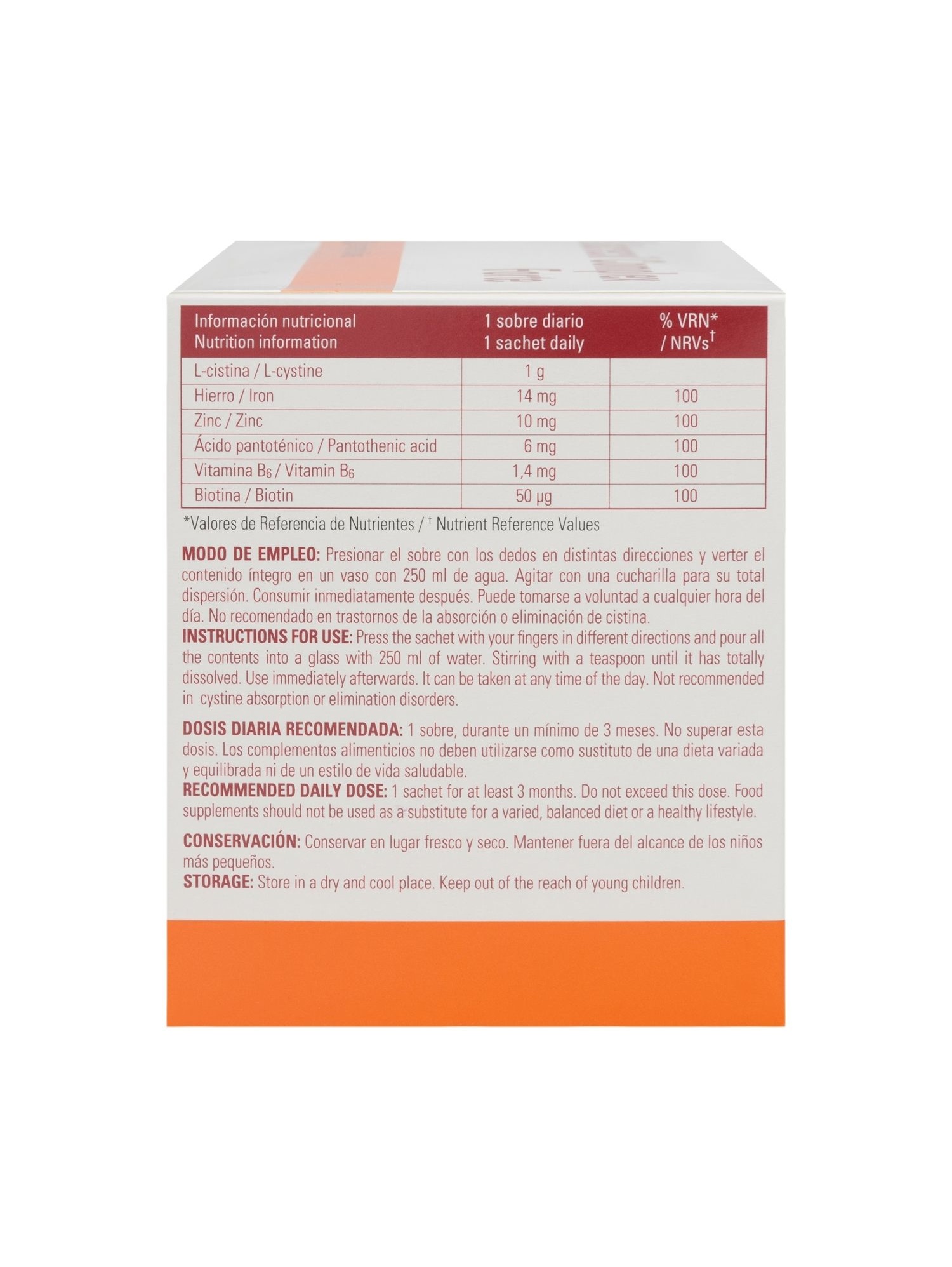 L-CISTINA, ÁCIDO PANTOTÉNICO, VITAMINA B6, BIOTINA, HIERRO, ZINC.