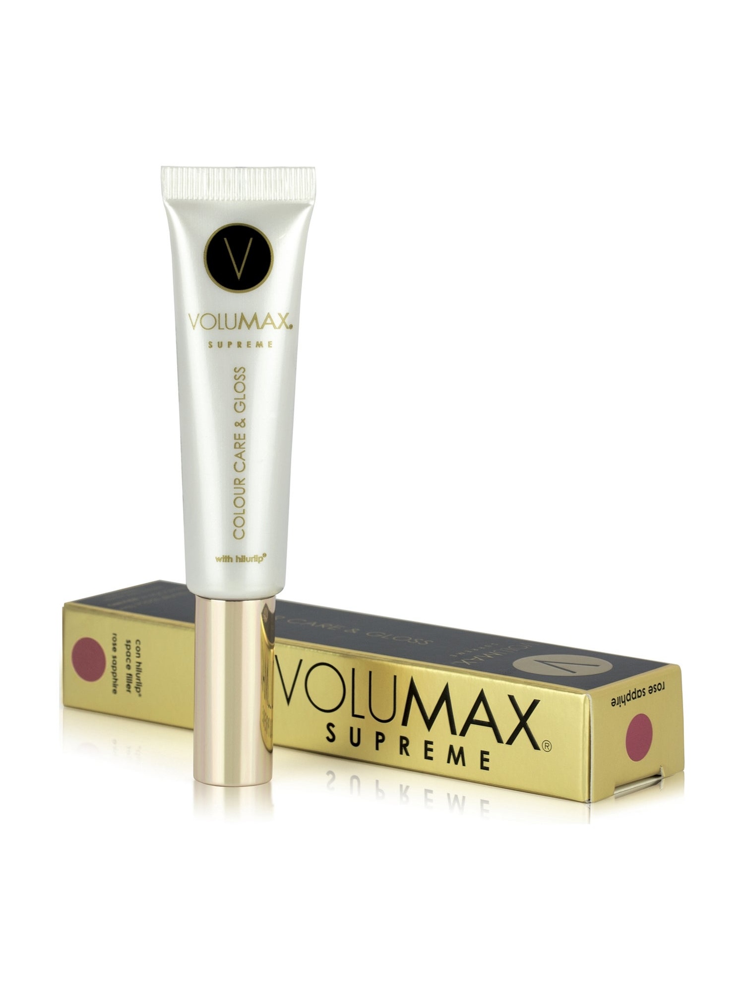 Volumax® Supreme Colour Care & Gloss rose sapphire 15 ml es un labial con un potente efecto voluminizador. Además, ayuda a redefinir, minimizar las líneas verticales y ultrahidratar. El tripéptido GHK estimula el fibroblasto, aumentando la producción natural de colágeno, ácido hialurónico y elastina. Su fórmula con manteca de karité crea una barrera protectora y nutre los labios en profundidad. Pigmentos puros ultracolor 3D ayudan a distribuir la luz realzando el volumen y corrigiendo las irregularidades de la superficie y el color. El resultado son labios densos, suaves y de aspecto joven.