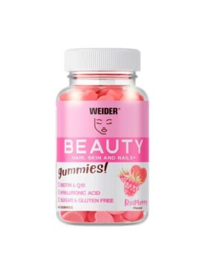 Complemento alimenticio en forma de divertidas y deliciosas gominolas con sabor a fresa, especialmente desarrollado para favorecer la belleza femenina.