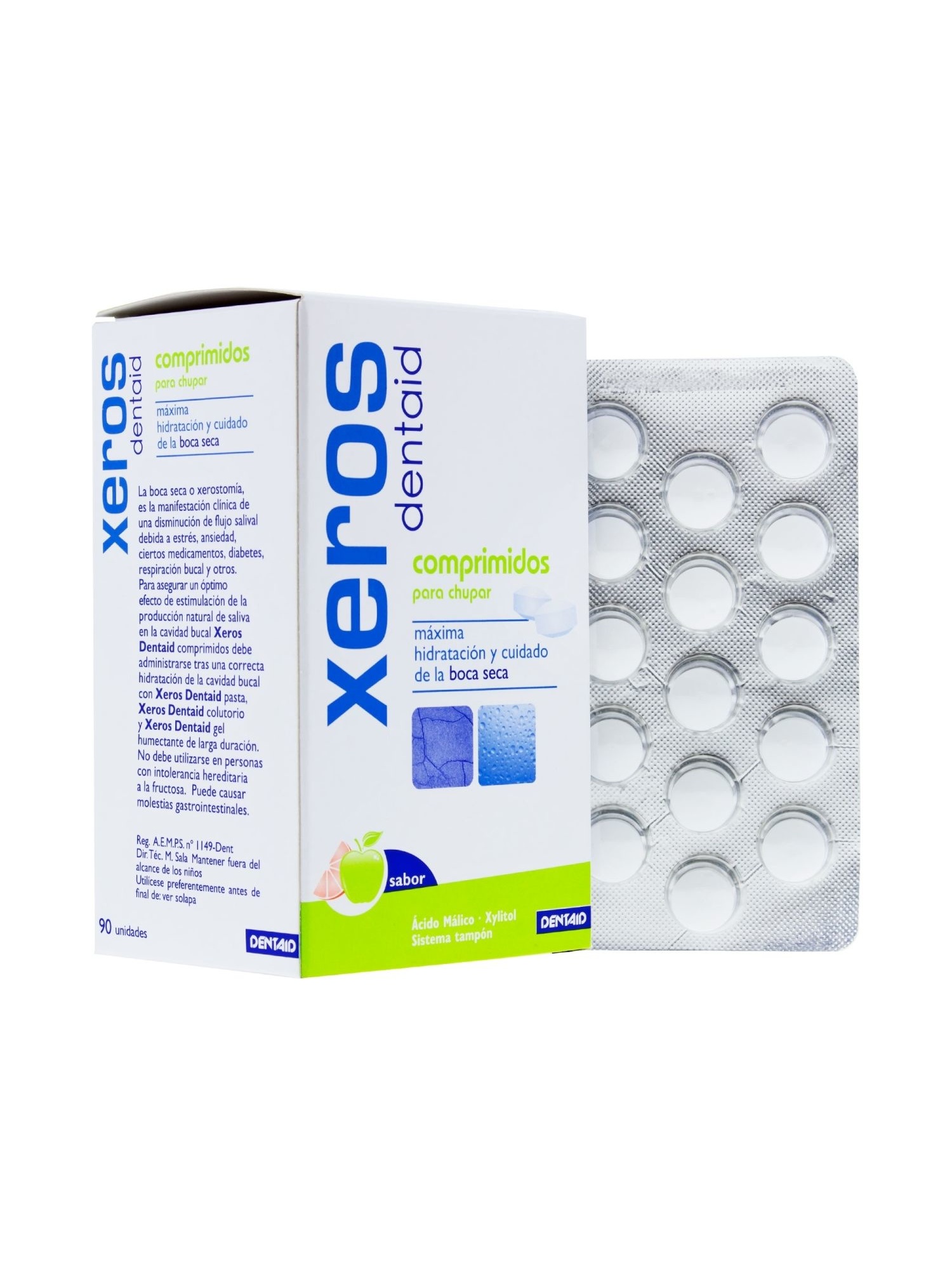 Las pastillas Xeros Dentaid se disuelven en la boca y favorecen la segregación de saliva y refresca la cavidad oral. Este producto para la sequedad bucal se puede completar con otros productos dentales de la gama para conseguir mejores resultados.