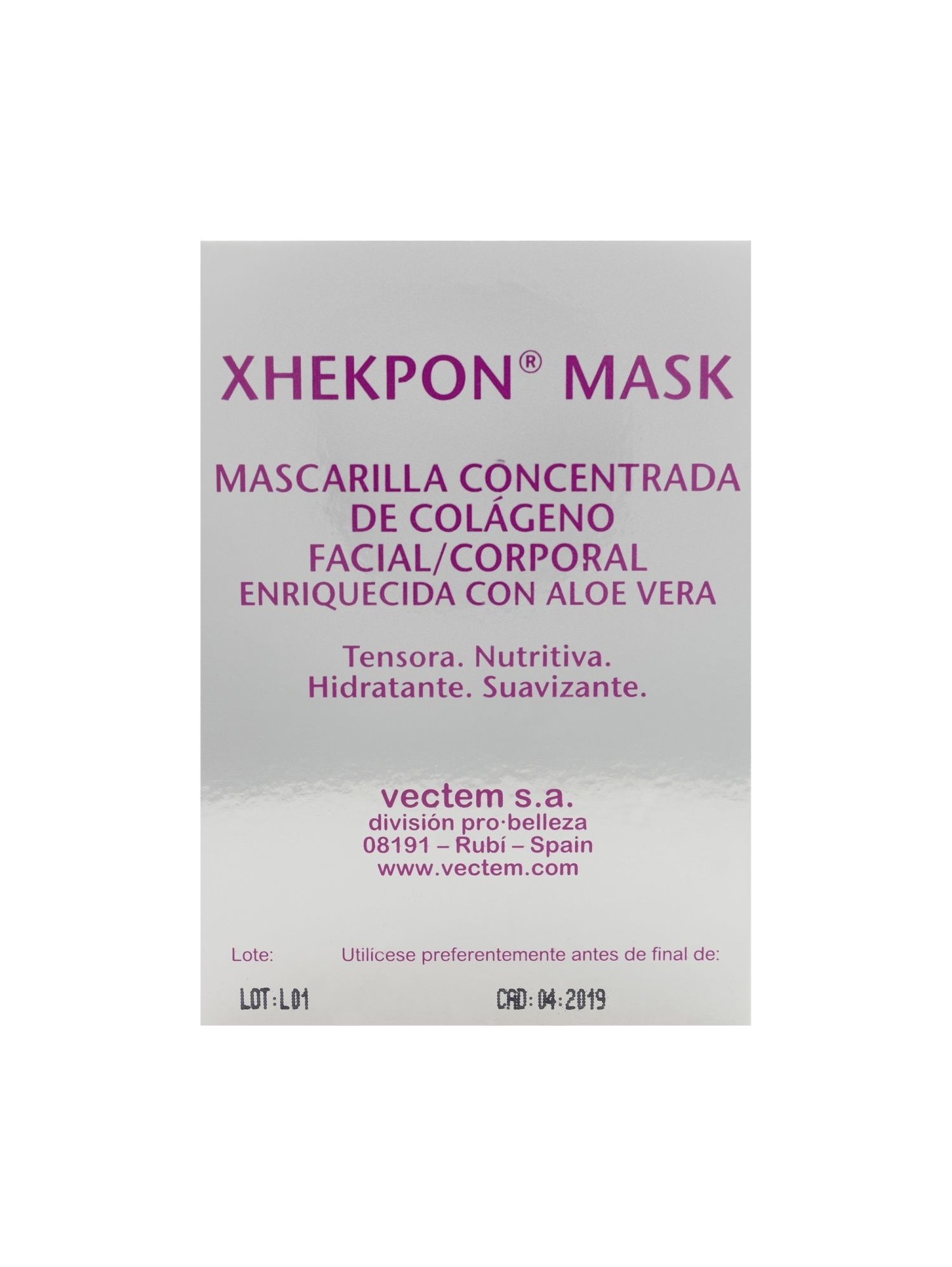 Xhekpon Mask contiene colágeno hidrolizado, que permite penetrar hasta las capas más profundas de la piel y actuar de manera más rápida. Su elevada concentración de colágeno se combina con el aloe vera, cuyas propiedades consiguen suavizar la piel, no engrasarla ni resecarla. Además, proporciona una piel lisa, relajada y rejuvenecida.