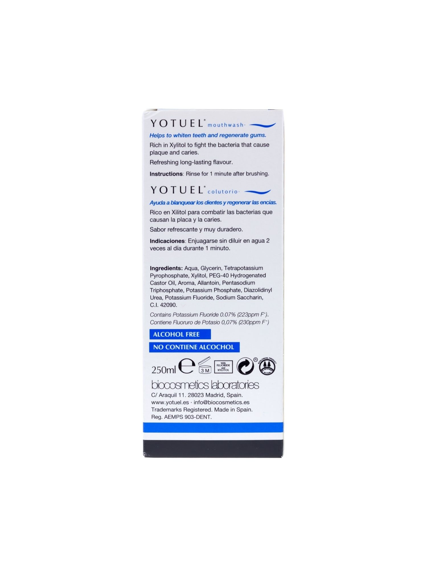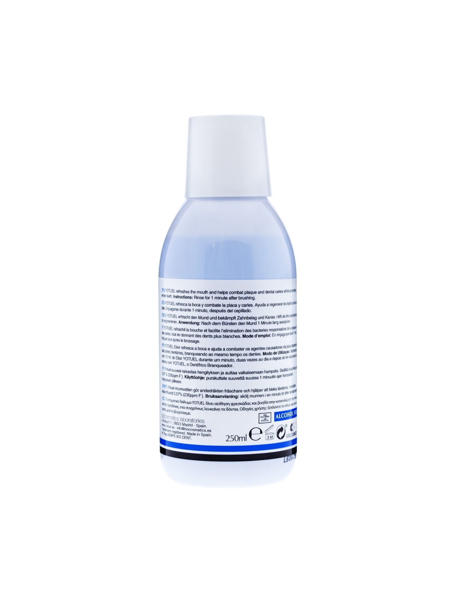 Yotuel colutorio 250ml es un colutorio blanqueador que refresca y limpia la boca. Gracias a su formulación combate la placa bacteriana, la caries y ayuda a regenerar los tejidos bucales.